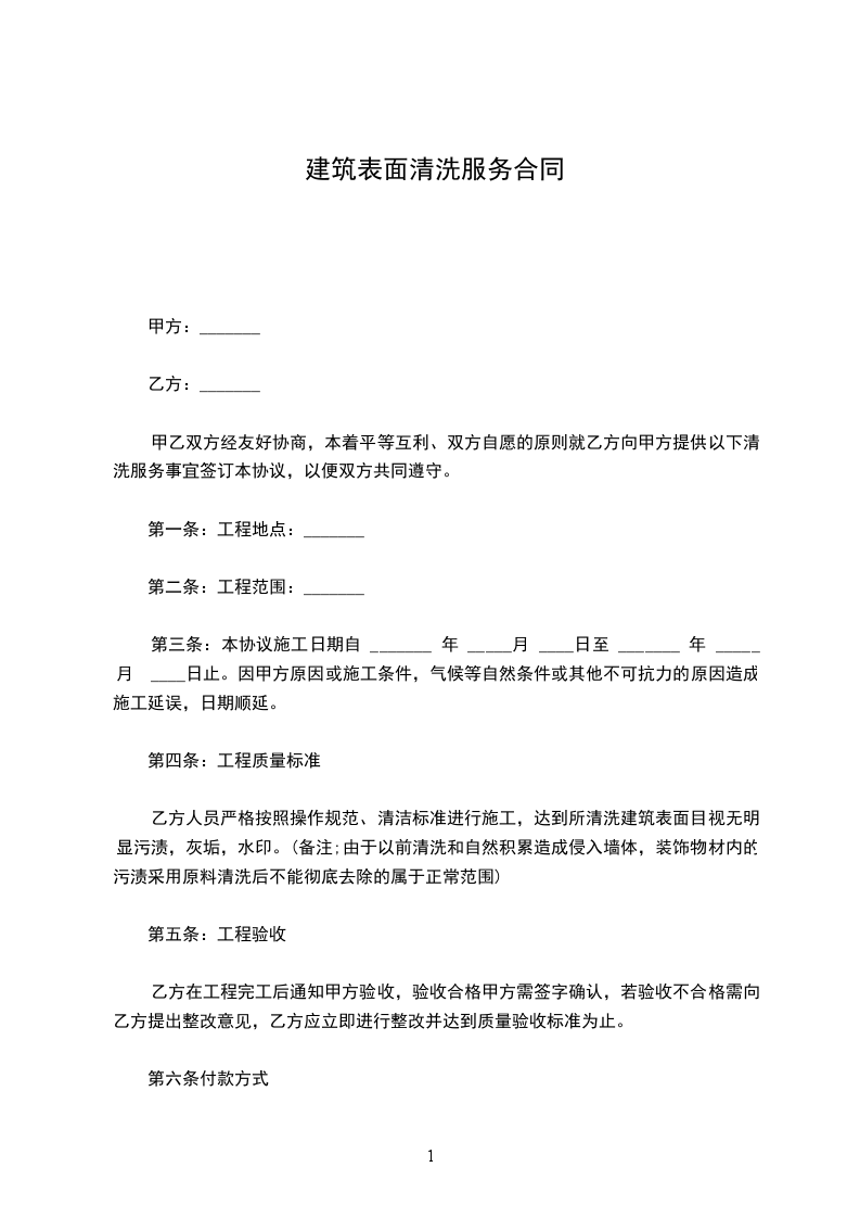 甲乙双方经友好协商,本着平等互利、双方自愿的原则就乙方向甲方提供以下清洗服务事宜签订本协议,以便双方共同遵守。
