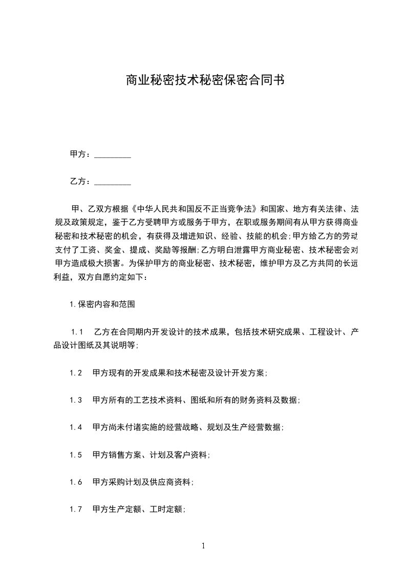 1.1乙方在合同期内开发设计的技术及图纸,包括设计图纸及其说明书等;