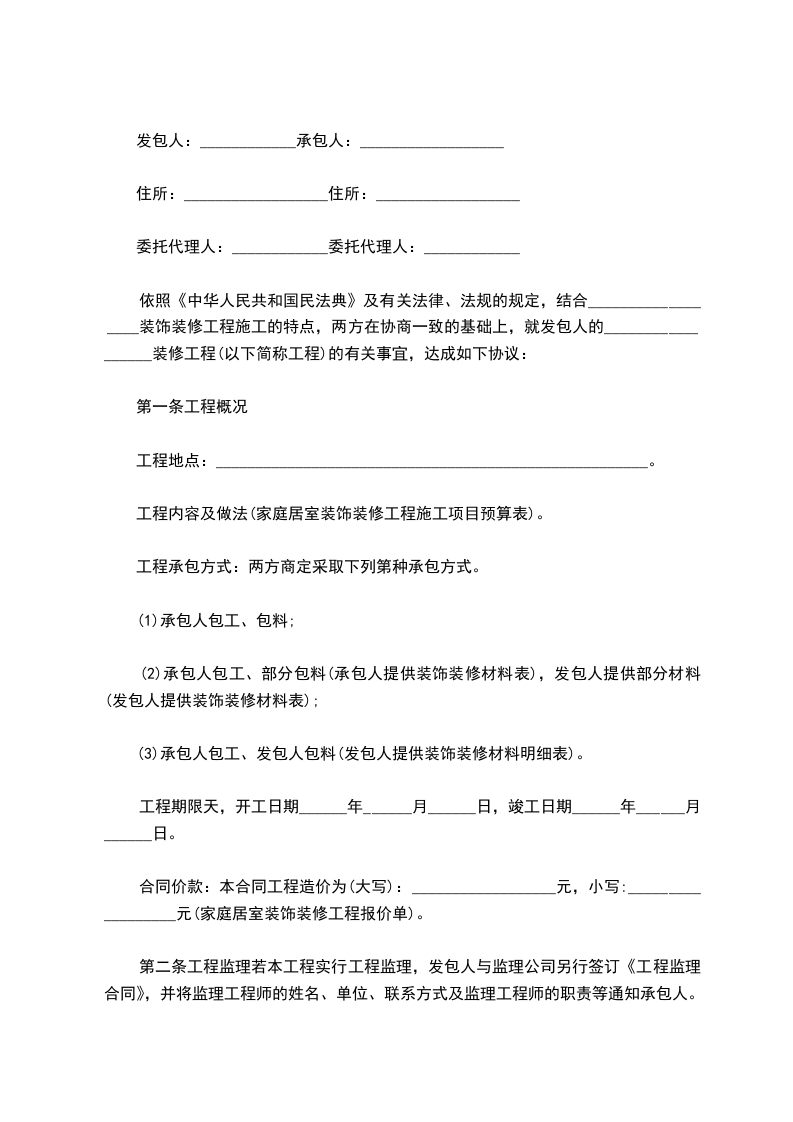 四、承包方式:包工完成装修,装修材料由甲方的自己购买。