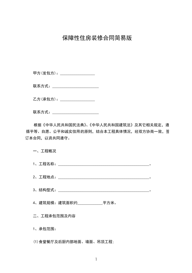 四、承包方式:甲方按乙方要求必须保证装修期间的所需材料(乙方需提前通知甲方),和施工期间的午餐供应,乙方负责施工。