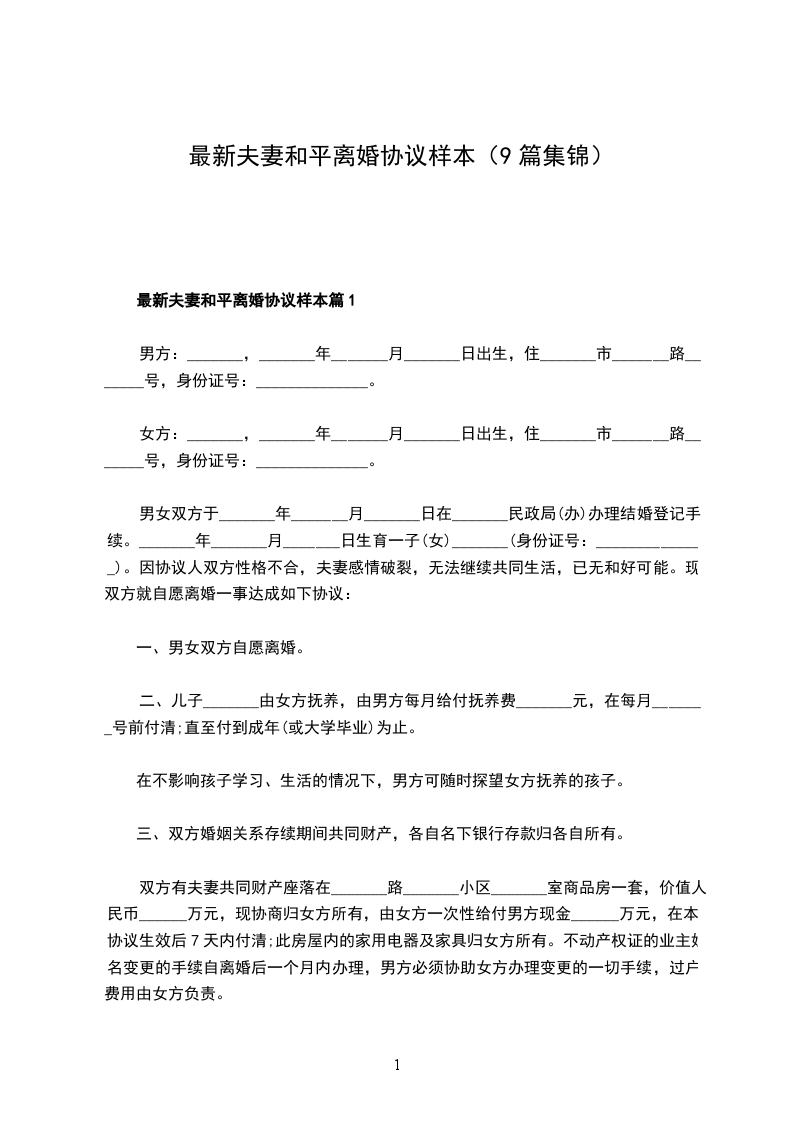 男方与女方于______年____月相识,并于______年____月____日在_________民政局登记结婚,婚后于______年____月____日生育一儿子,名_________。因____________________________致使夫妻双方感情破裂,且已无任何和好可能,现经双方自愿协商达成一致意见,订立离婚协议如下:
