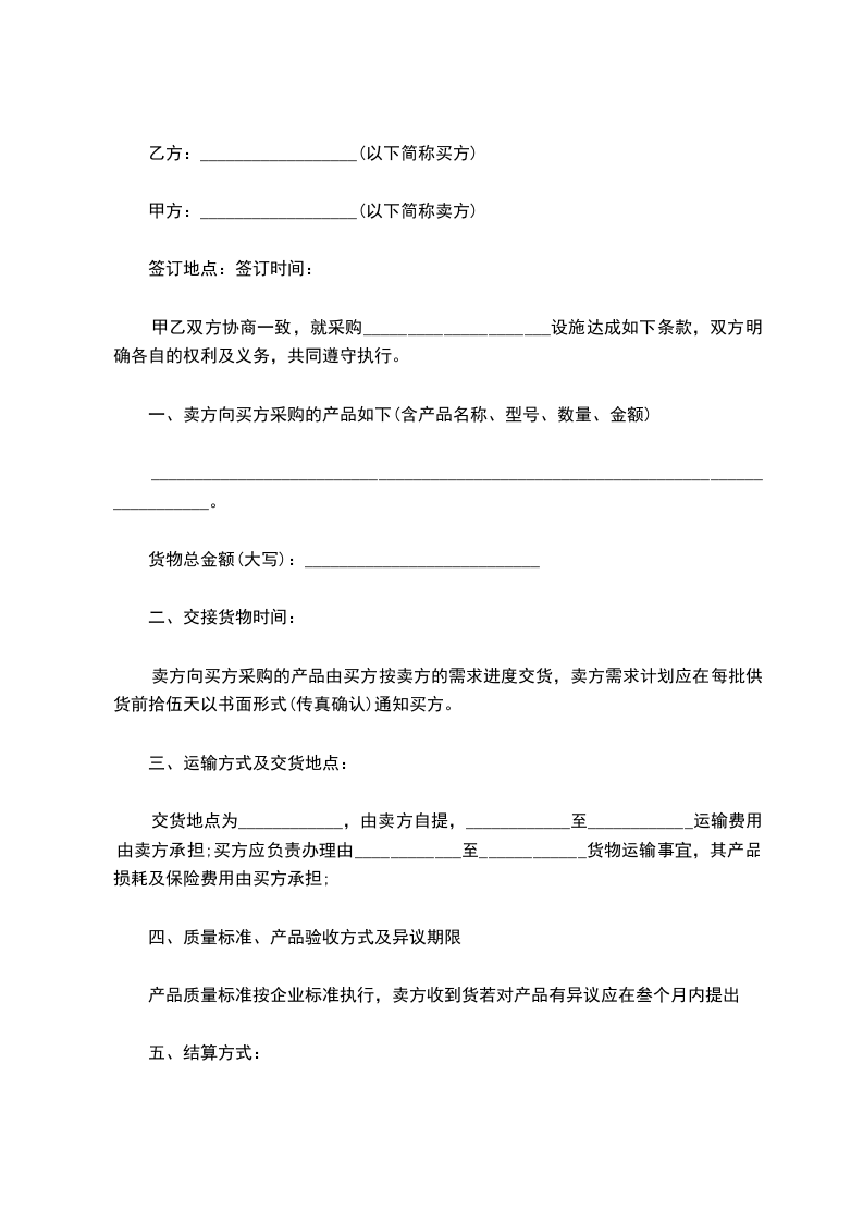 五、运输费用:合同货物运输费用由甲方承担。