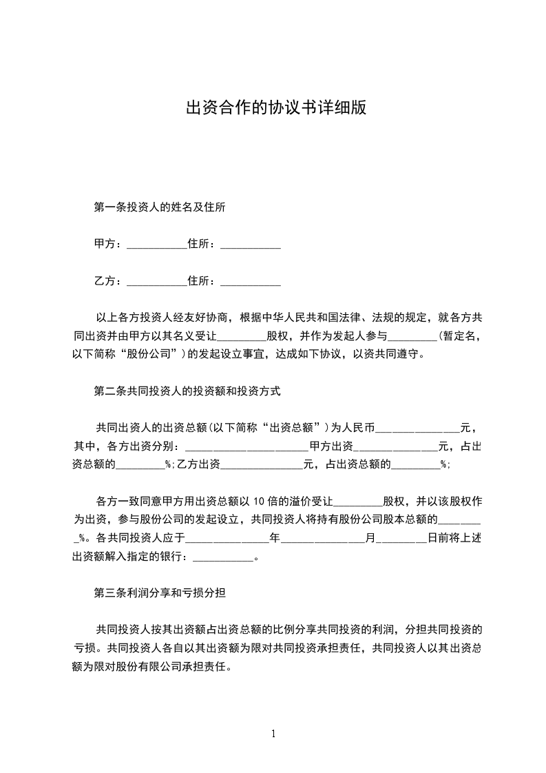 共同出资人的出资总额(以下简称“出资总额”)为人民币_______________元,其中,各方出资分别:______________________甲方出资_______________元,占出资总额的_________%;乙方出资_______________元,占出资总额的_________%;