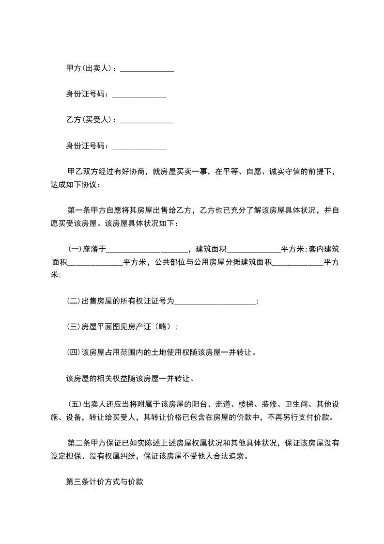 第一条甲方自愿将其房屋出售给乙方,乙方也已充分了解该房屋具体状况,并自愿买受该房屋。该房屋具体状况如下: