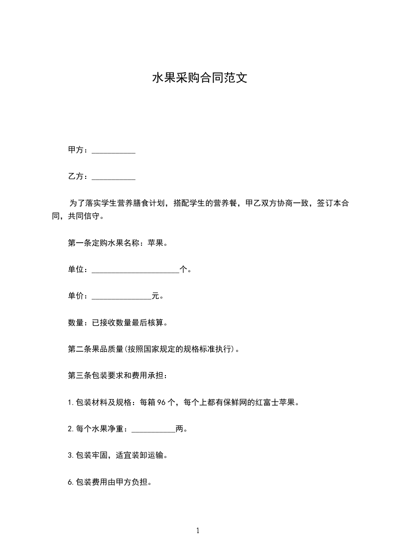 第二条果品质量(按照国家规定的规格标准执行)。