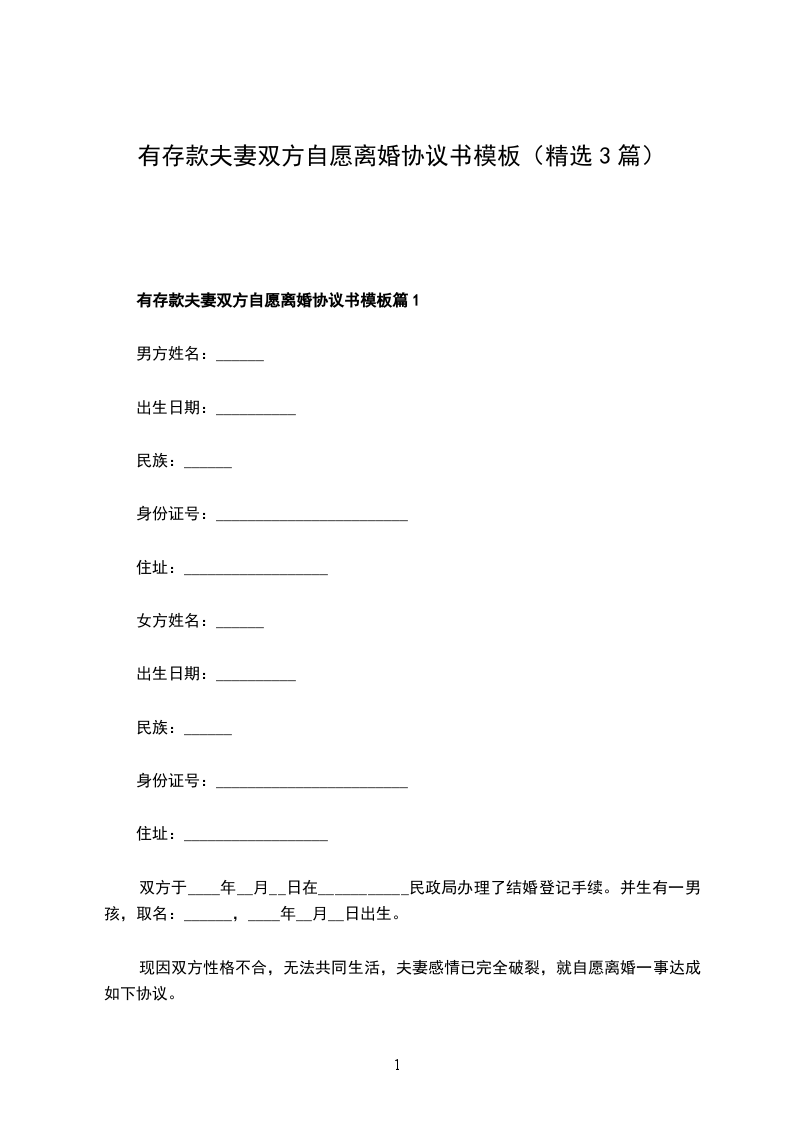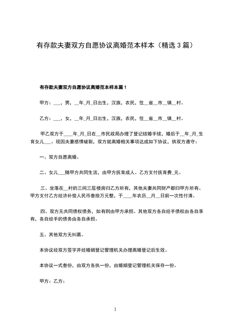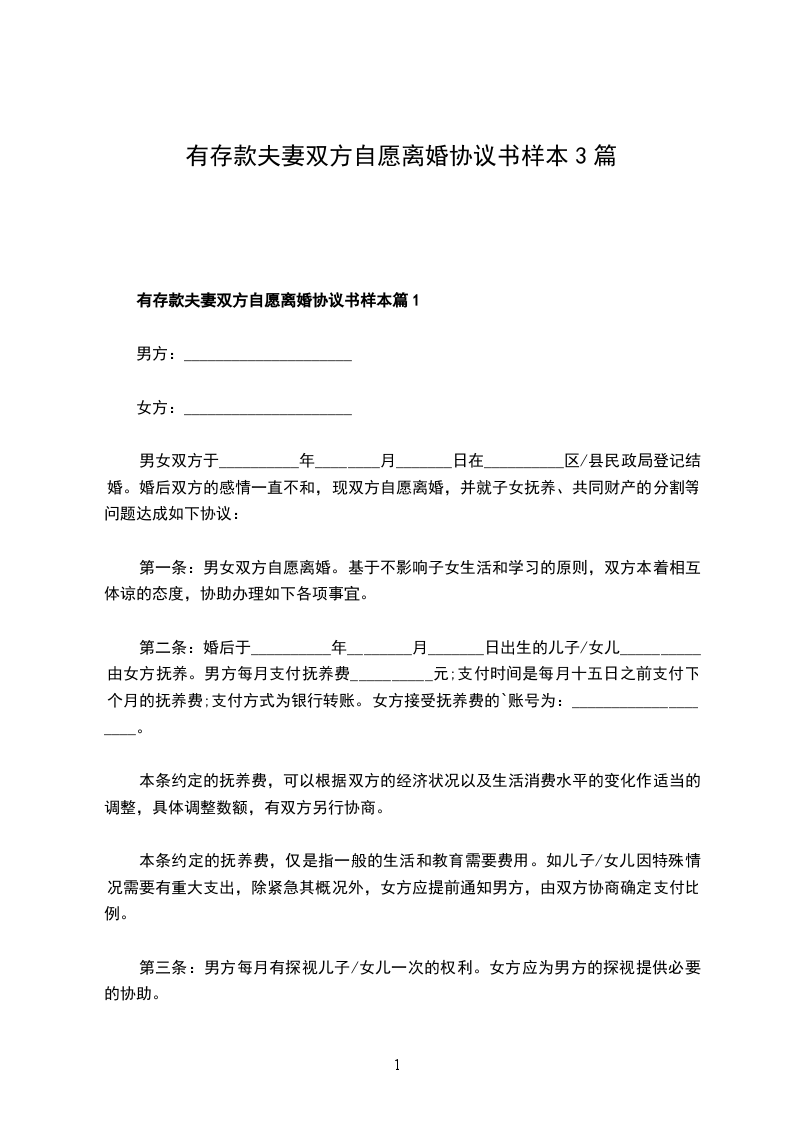 有存款夫妻双方自愿离婚协议书样本篇1