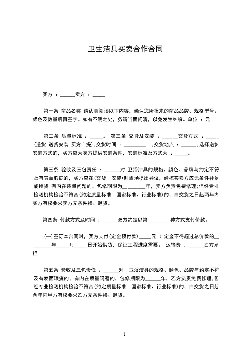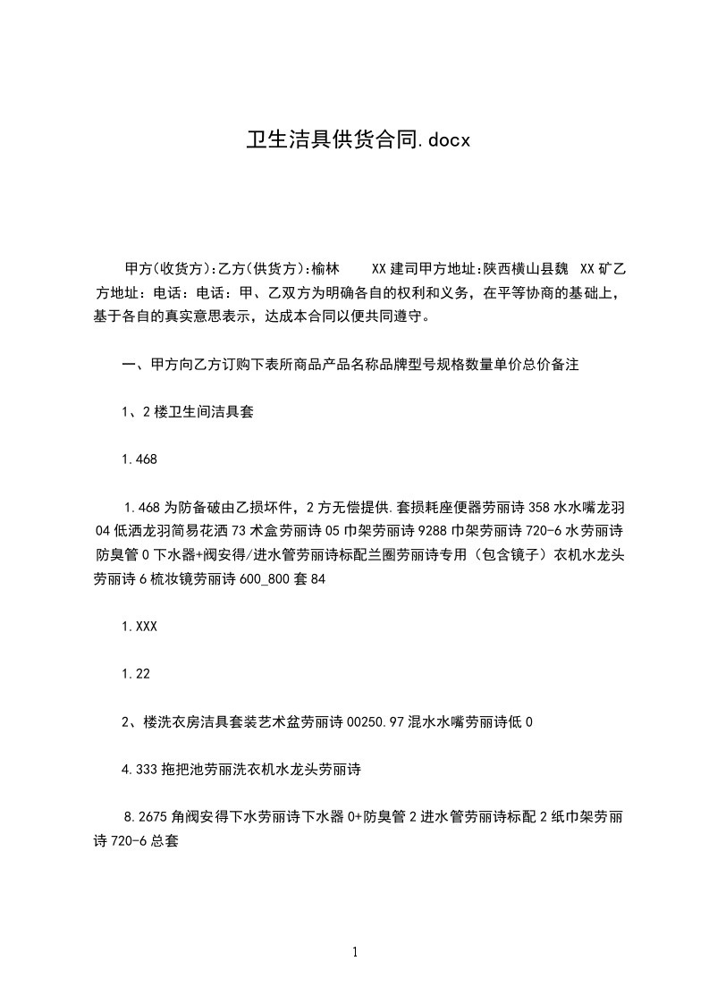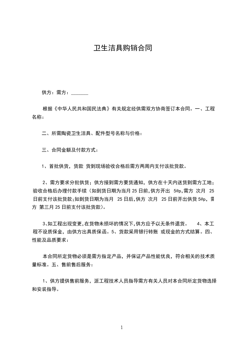 甲方由 岷县至合作二级公路改建工程房建项目建设的需要,现需从乙方处采购立式小便器、蹲式、盥洗盆及坐式马桶等卫生洁具材料。根据《中华人民共和国民法典》及其他有关法律、法规的规定,遵循平等、自愿、公开和诚实信用的原则,经甲乙双方协商一致,订立本合同。第一条产品及价款