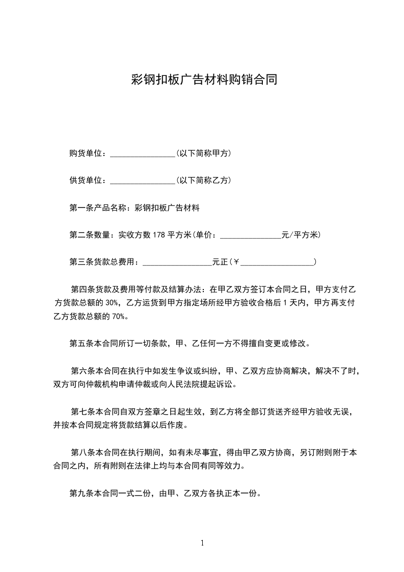 第一条产品名称:彩钢扣板广告材料