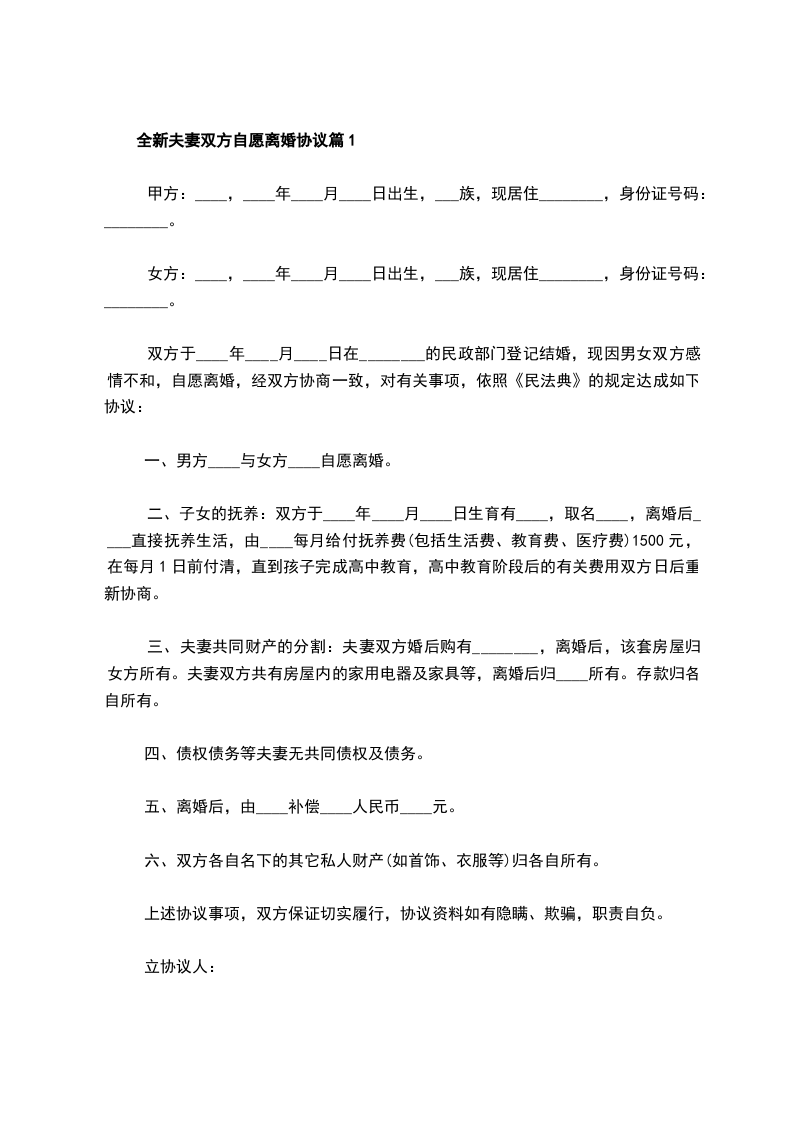 本《离婚协议书》一式叁份,甲、乙双方,婚姻登记机关各持一份,具有同等法律效力,自婚姻登记机关颁发《离婚证》之日起生效。