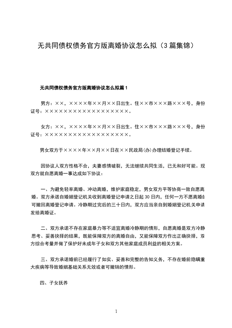 无共同债权债务官方版协议离婚范本怎么写篇3