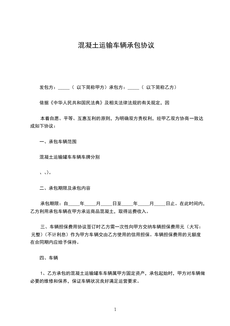1、乙方承包的混凝土运输罐车车辆属甲方固定资产,承包起始时,甲方对车辆做必要的维修和保养,保证车辆状况良好满足运营要求。