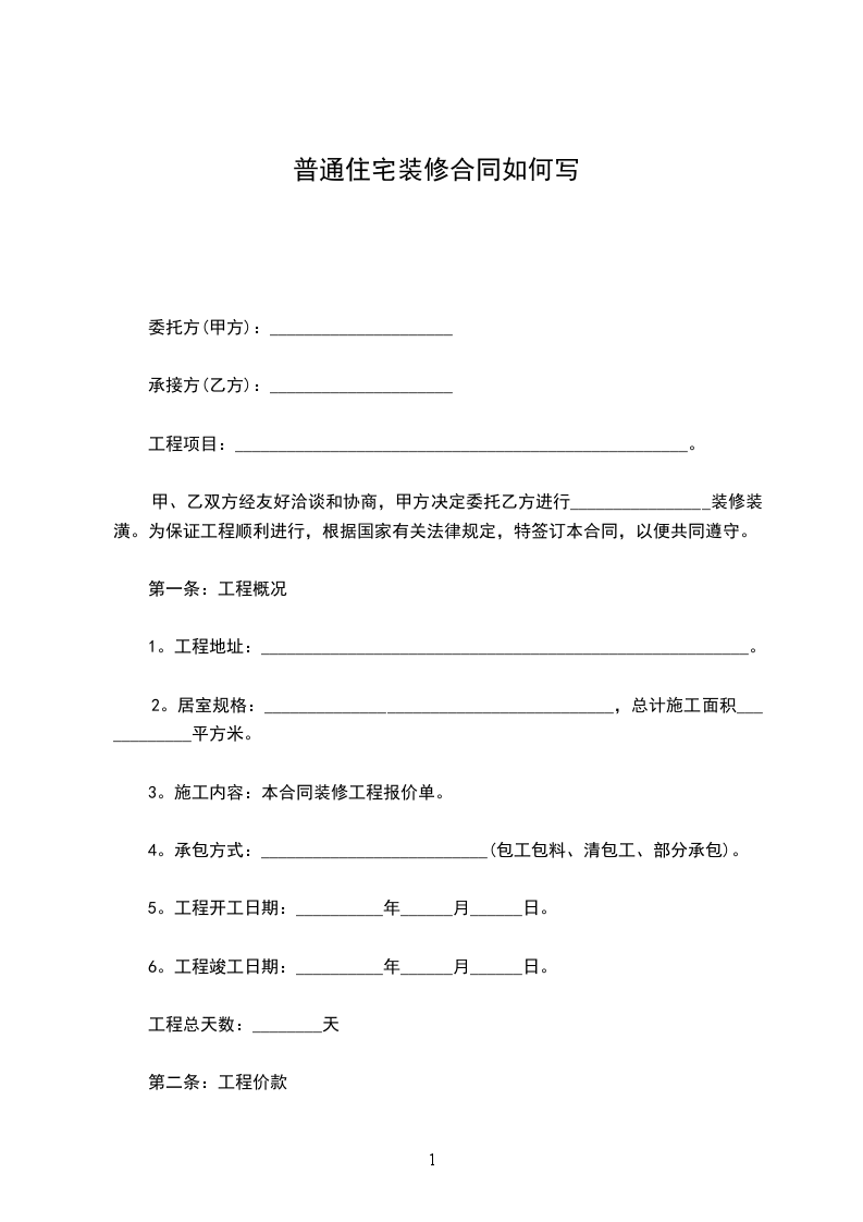 普通住宅装修合同如何写