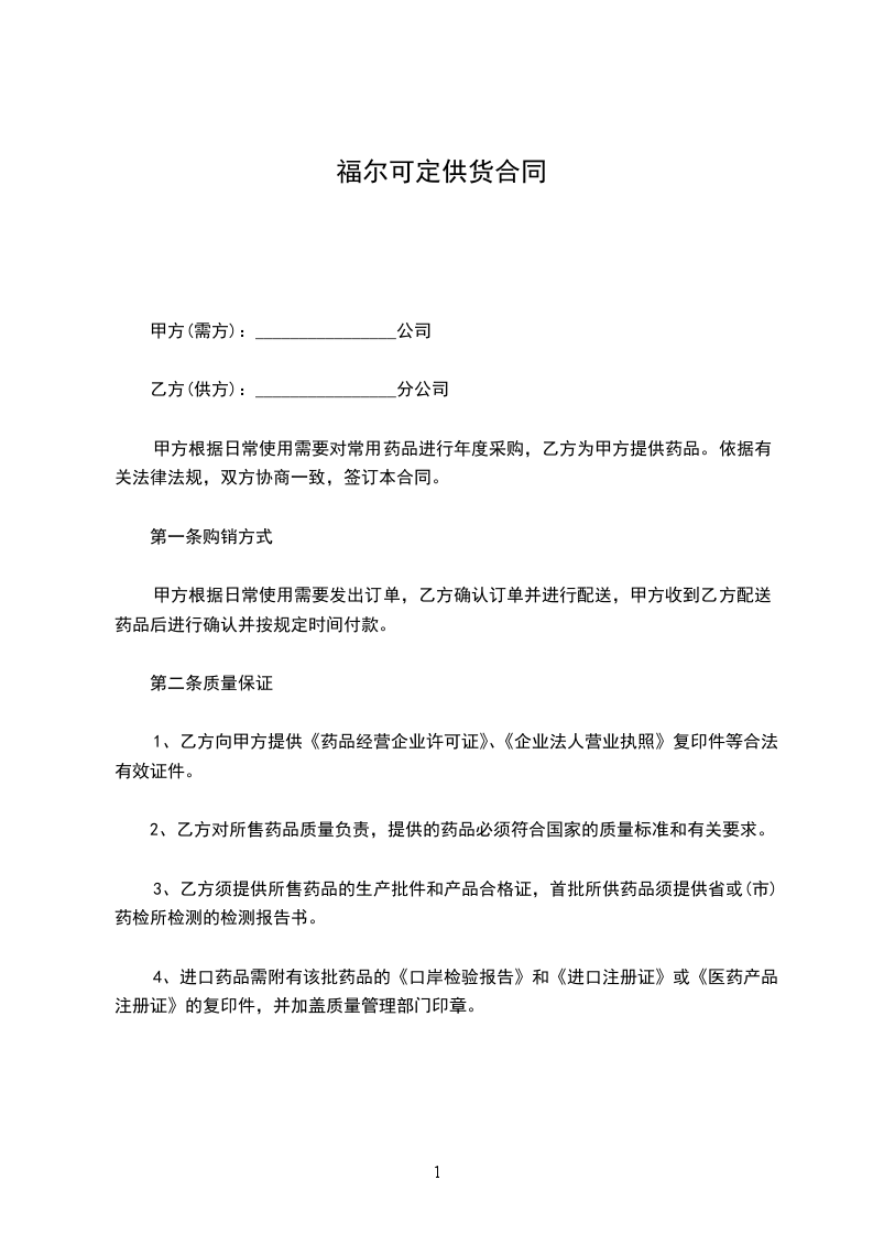3、乙方须提供所售药品的生产批件和产品合格证,首批所供药品须提供省或(市)药检所检测的检测报告书。