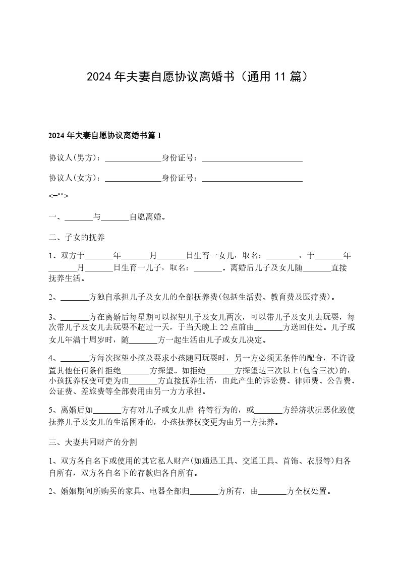 2024自愿协议离婚书怎么写篇11