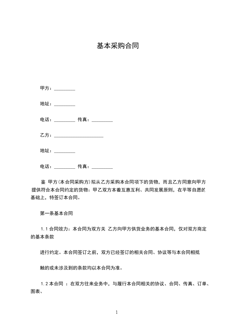 1.1合同效力:本合同为双方关 乙方向甲方供货业务的基本合同,仅对双方商定的基本条款