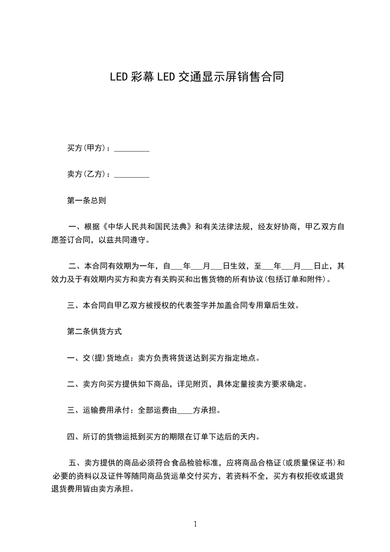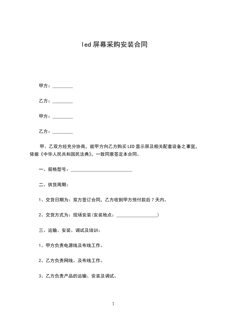 甲、乙双方经充分协商,就甲方向乙方购买LED显示屏及相关配套设备之事宜,依据《中华人民共和国民法典》,一致同意签定本合同。