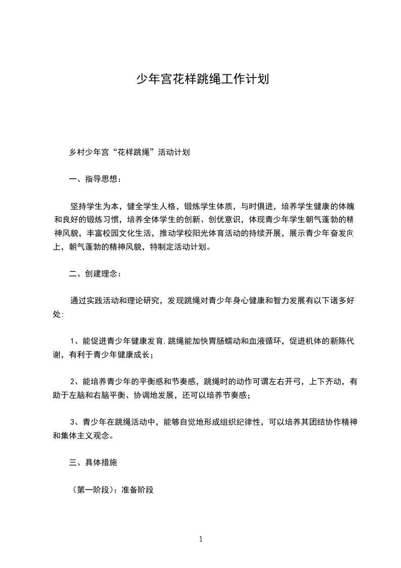 3、花样跳绳活动提高阶段工作规划。