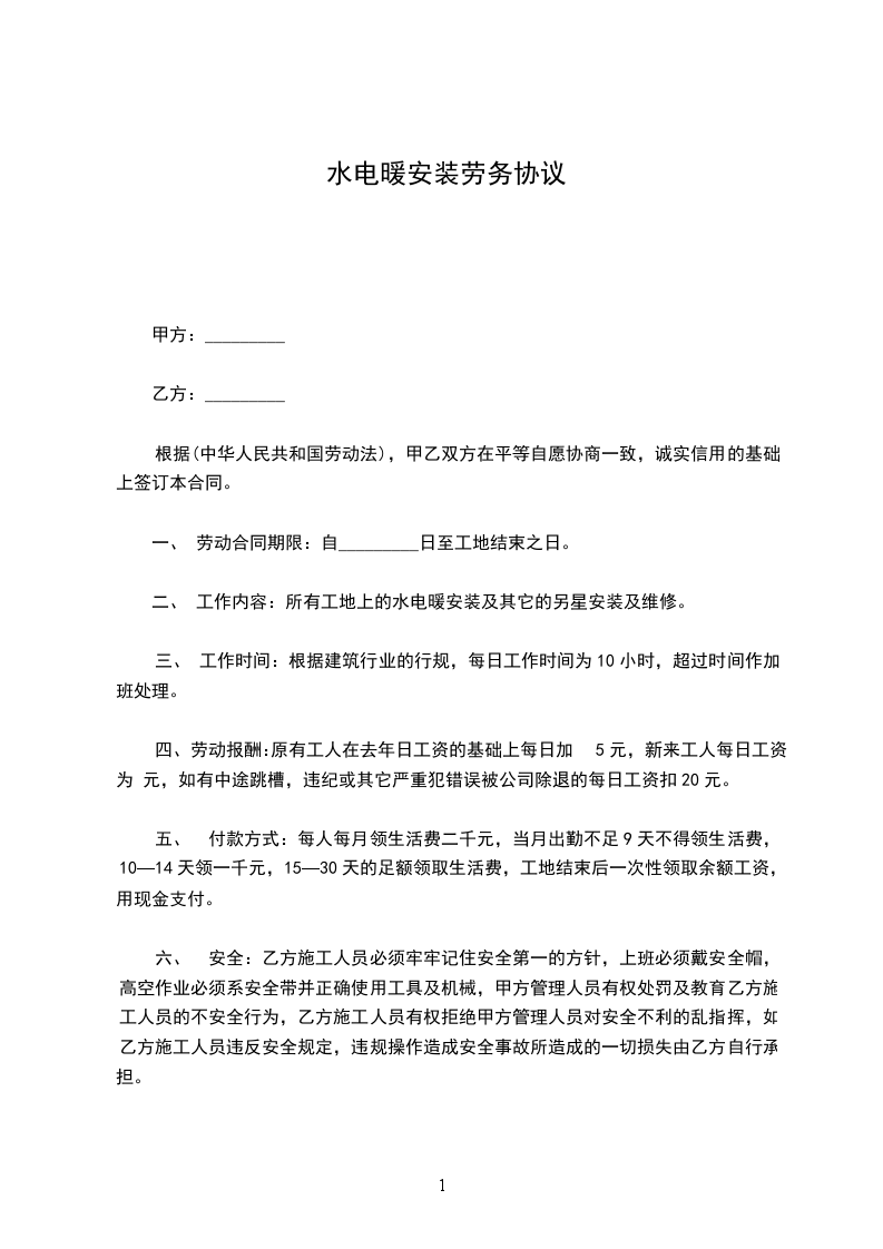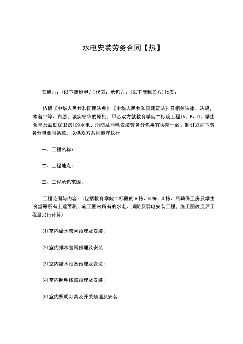 本着互相信任的原则,就甲方的水电工程达成以下协议。
