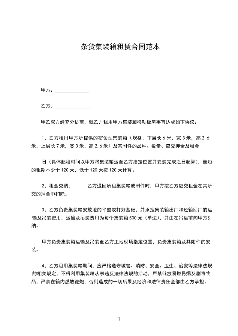六、设备租赁期限为_____年,租期从供货厂向甲方托收贷款时算起,租金总额为人民币__________元(包括手续费_____%),分_____期交付,每期租赁金_____元,由甲方在每期期末按期向乙方托所如乙方不能按期承付租金,甲方则按逾期租金总额每天加收万分之三的罚金。