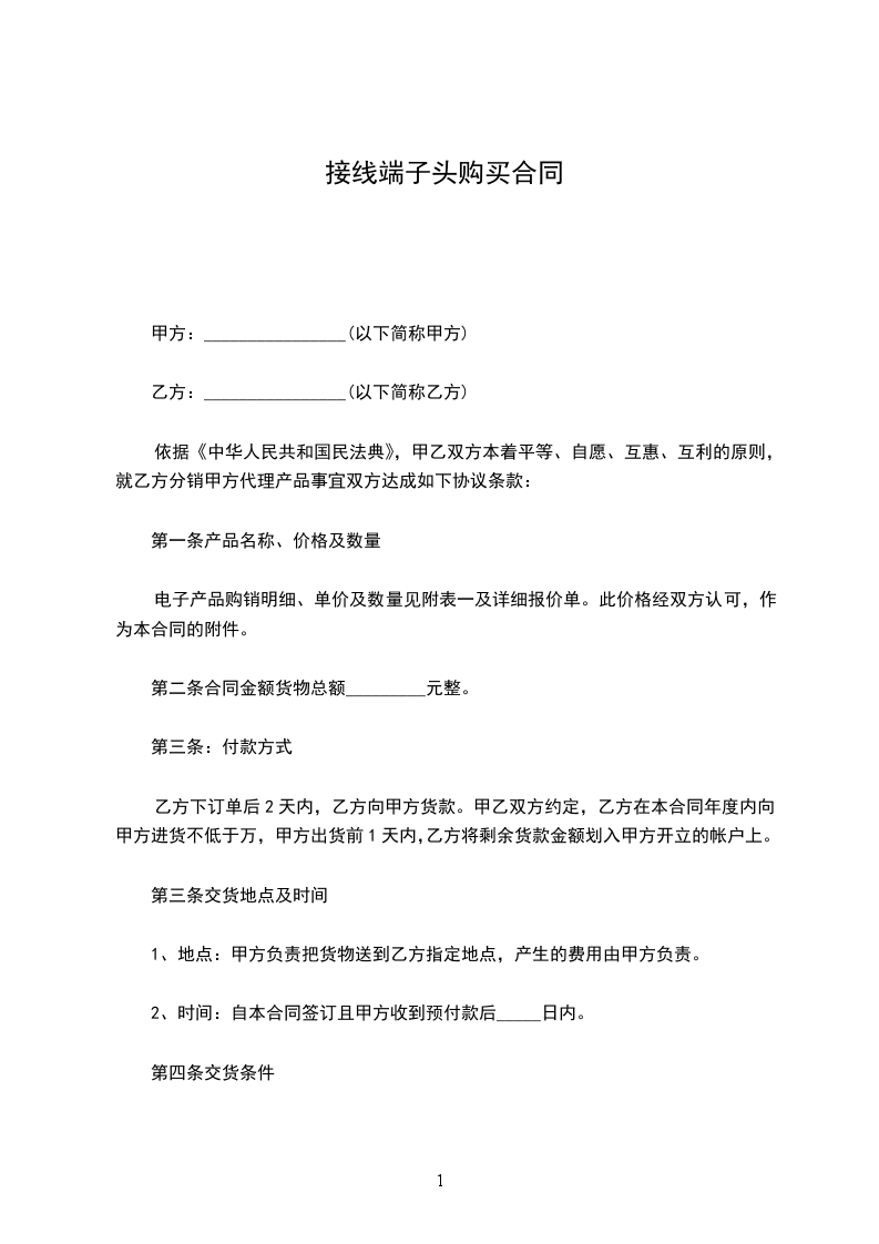 第二条合同金额货物总额_________元整。