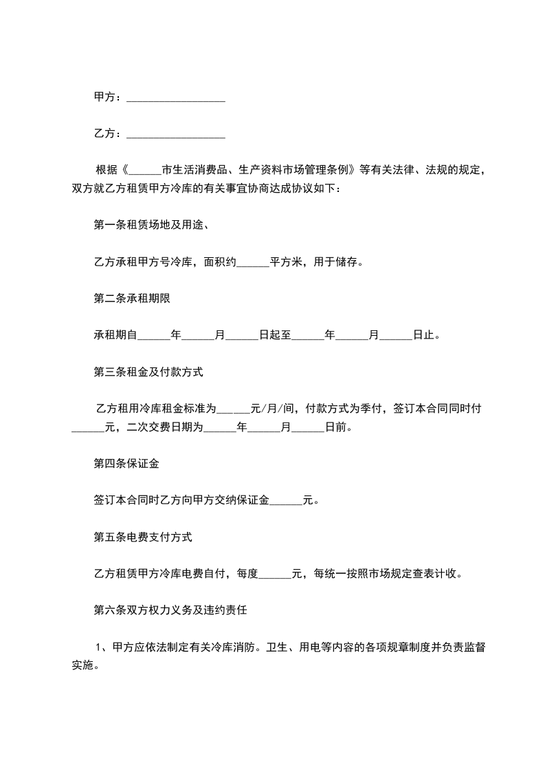 第二条租金及租赁期限