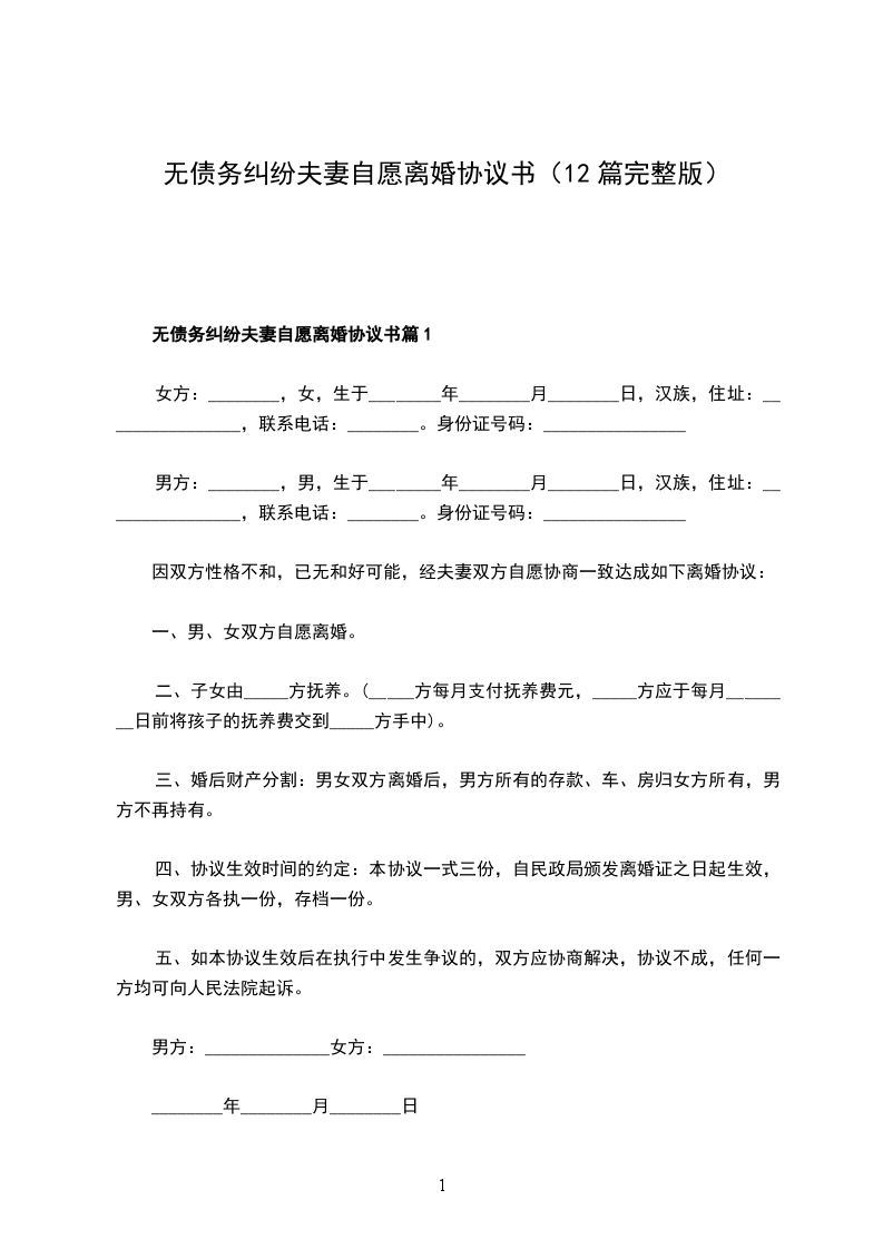 无债务纠纷夫妻自愿离婚协议书篇12