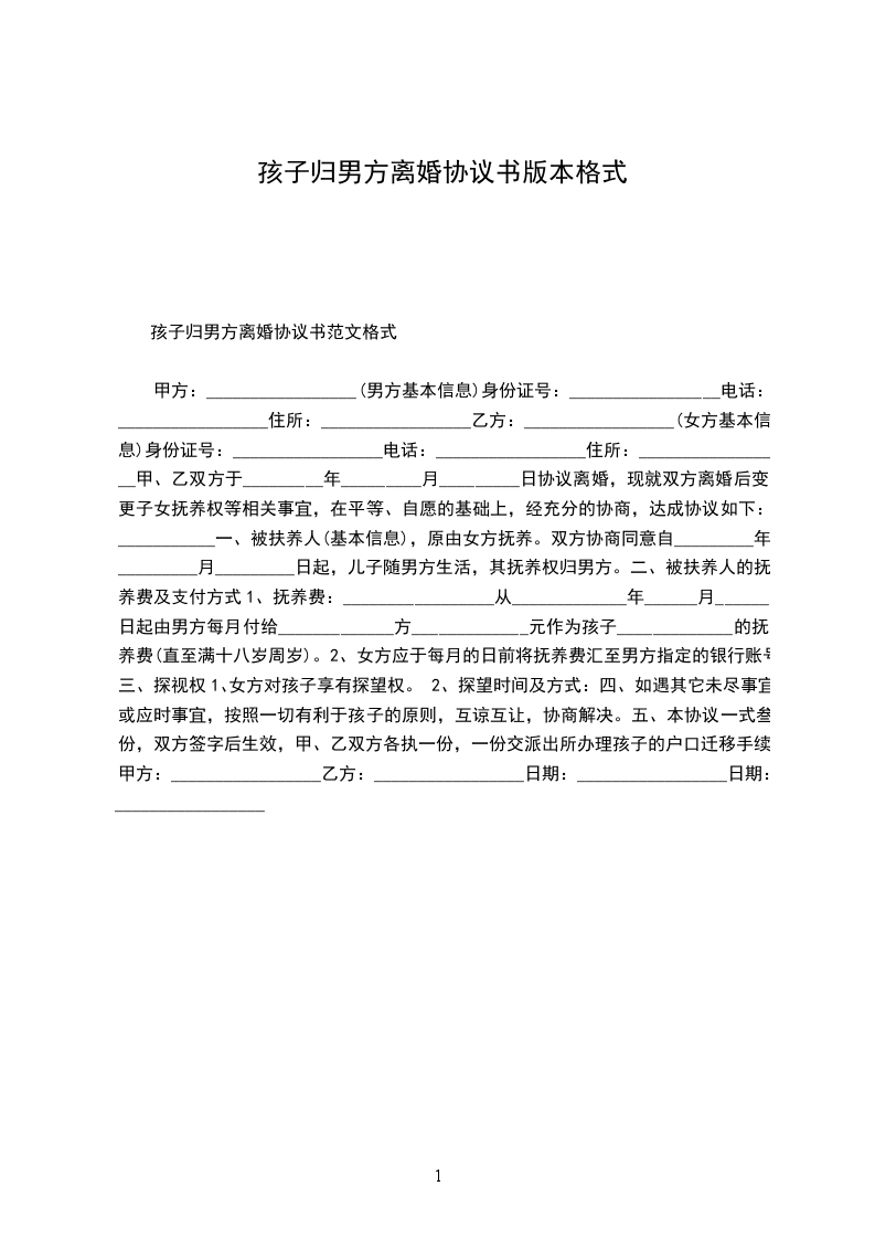 有孩子男方离婚协议格式篇9