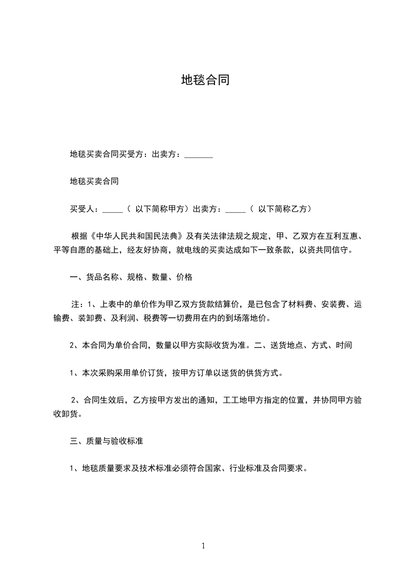 地毯买卖合同