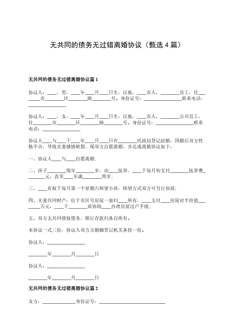 乙方:(男方):_______________,男,汉族,生于_____年__月__日,住________________________________