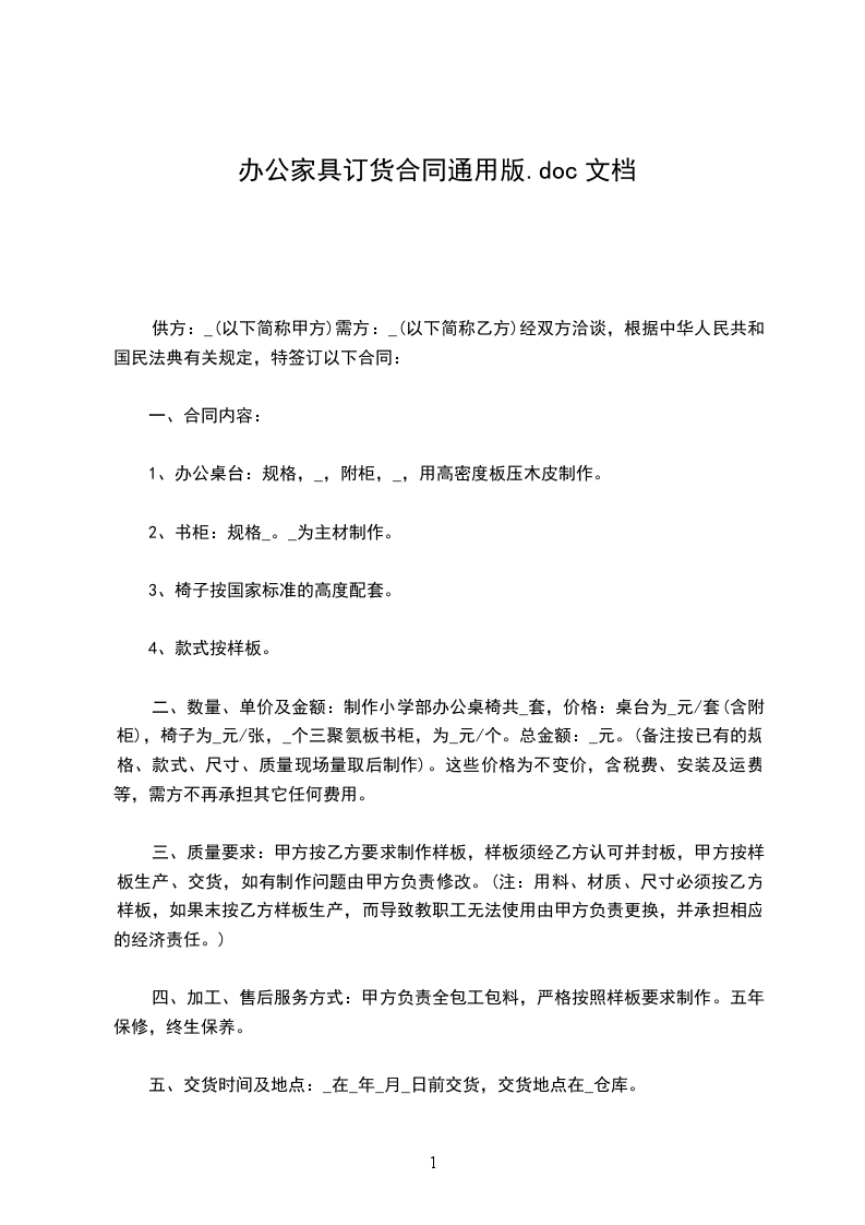 1、办公桌台:_________规格,_________,附柜,_________,用高密度板压木皮制作。
