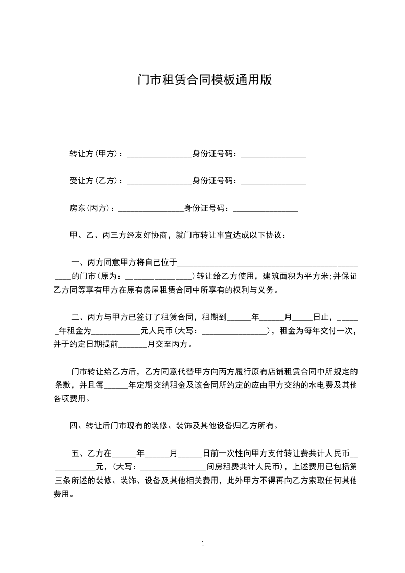 甲、乙、丙三方经友好协商,就门市转让事宜达成以下协议:
