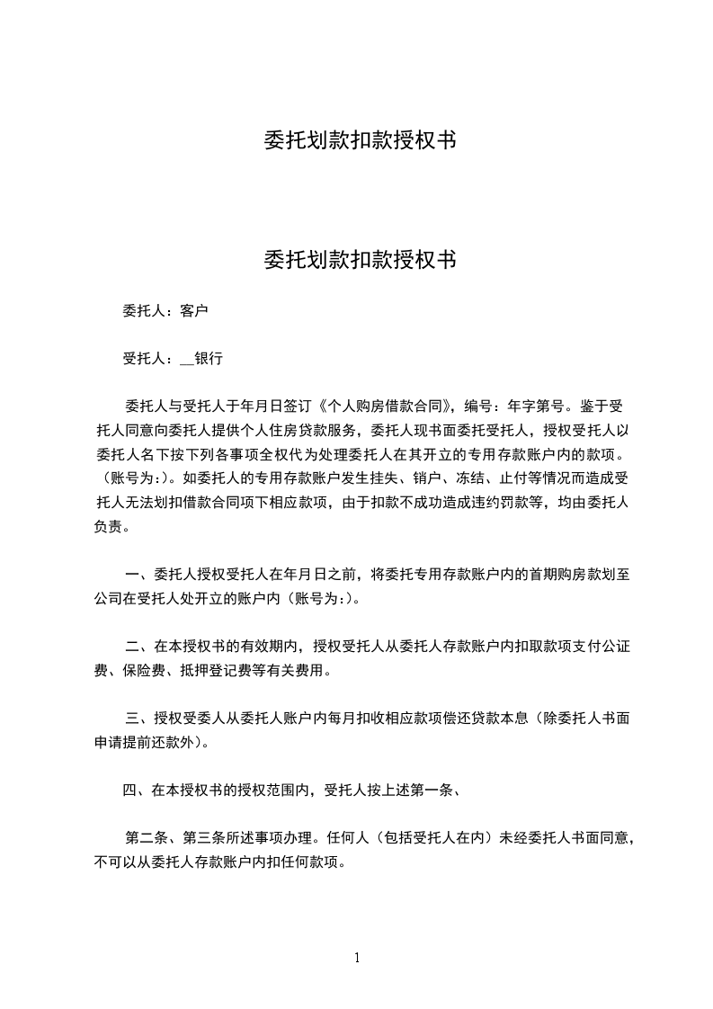 5,申购人同意与__________约定代扣款账户以壹个为限,如欲变更账户需重填本授权书,经贵行核对约定账户留存印鉴无误,授权书转交富邦______後通知申购人开始生效,并将原约定代扣款账户取消,未通知申购人前皆以原约定代扣款账户进行交易;申购人因故必须撤销委托时,应以书面事先通知贵行.