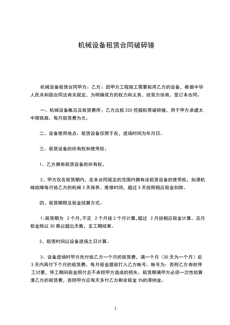 1、甲方使用乙方的多头破碎机须给乙方支付