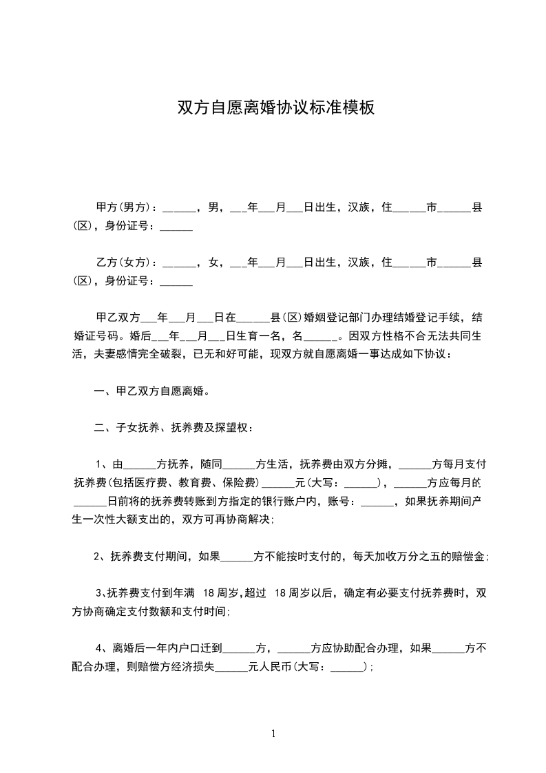 关于双方自愿协议离婚范本如何写篇2