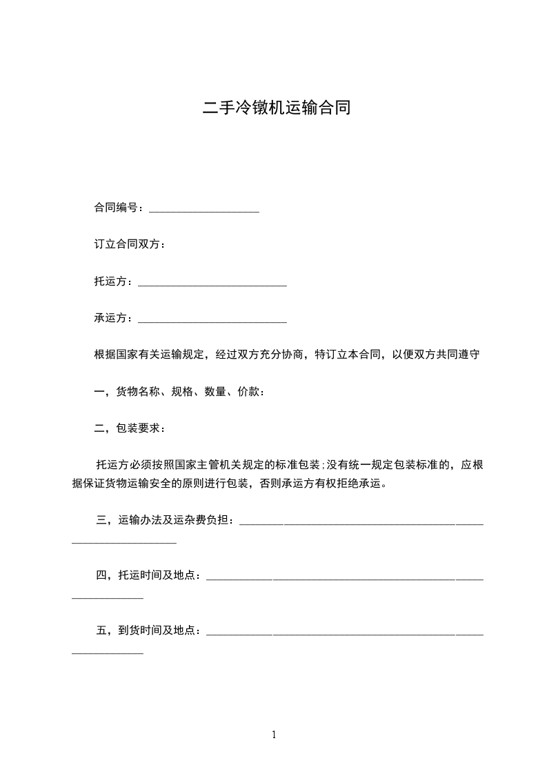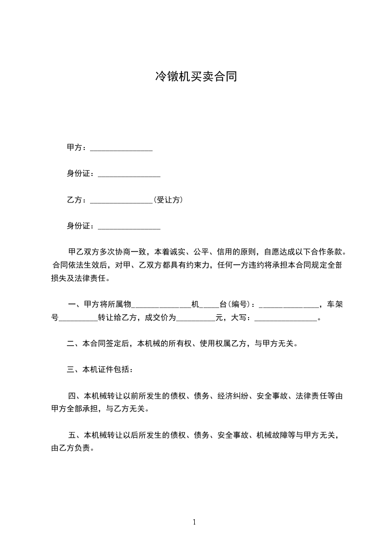 一、甲方将所属物_______________机_____台(编号):_______________,车架号__________转让给乙方,成交价为__________元,大写:________________。