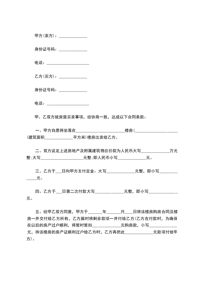 甲乙双方经过有好协商,就房屋买卖一事,在平等、自愿、诚实守信的前提下,达成如下协议: