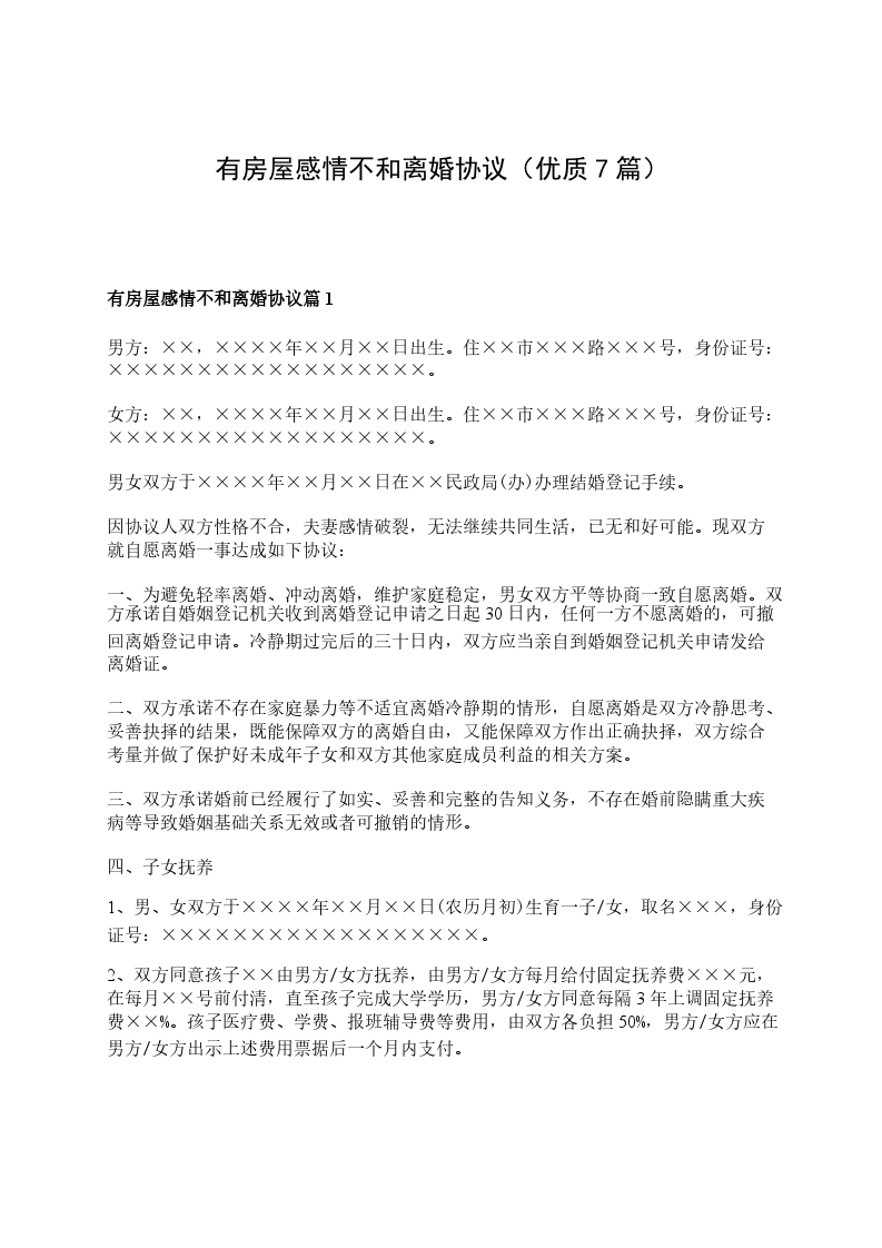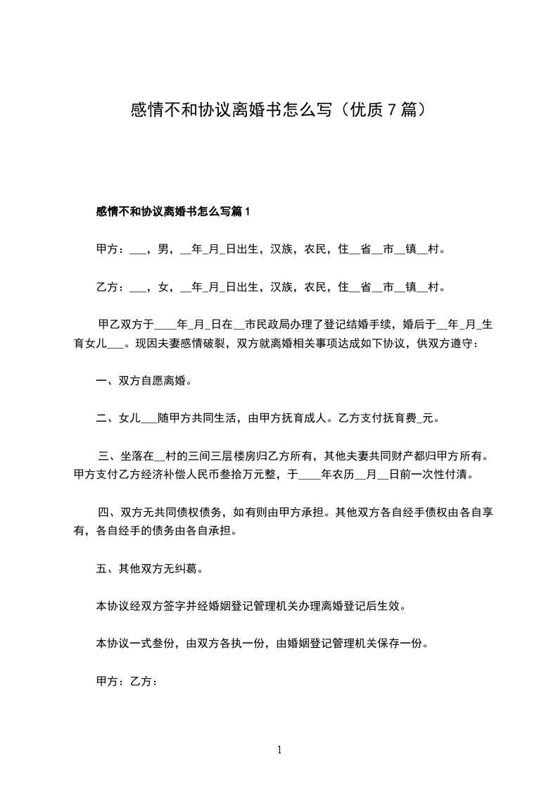 2024感情不和离婚协议怎么写篇7