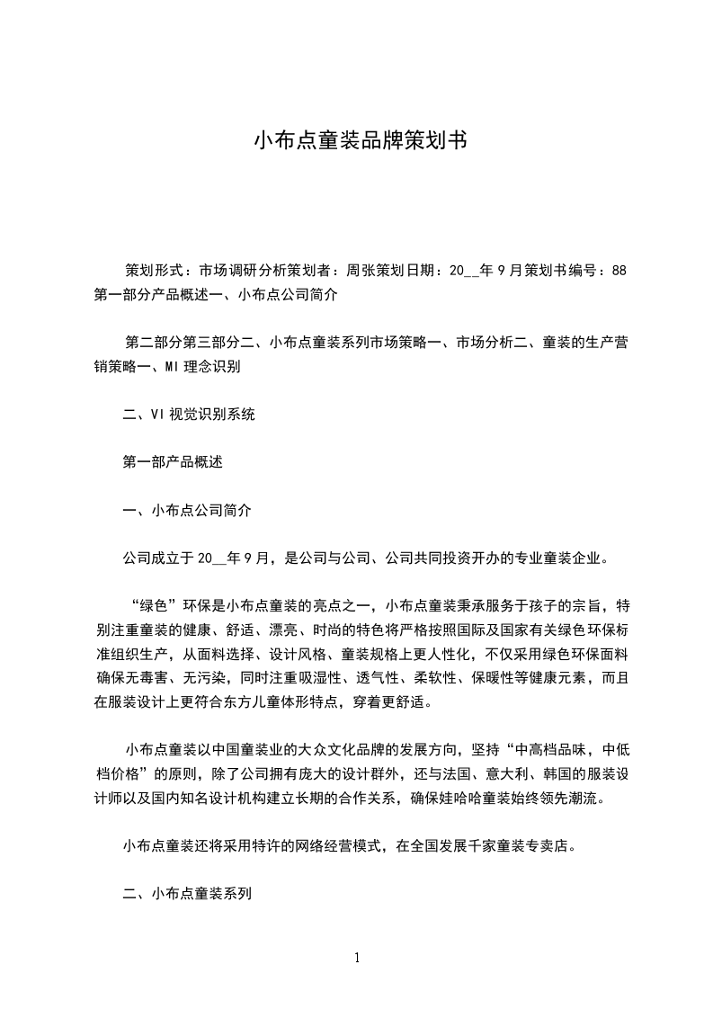 策划形式:市场调研分析策划者:周张策划日期:20__年9月策划书编号:88第一部分产品概述一、小布点公司简介