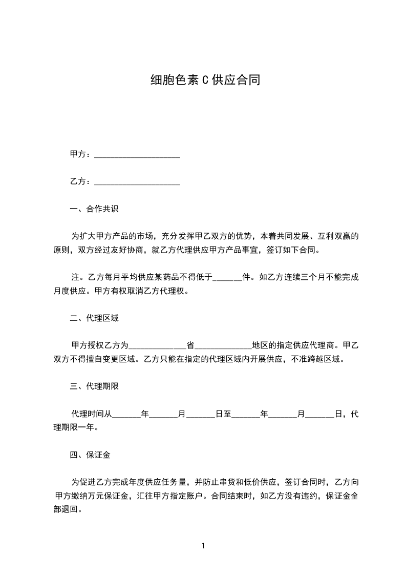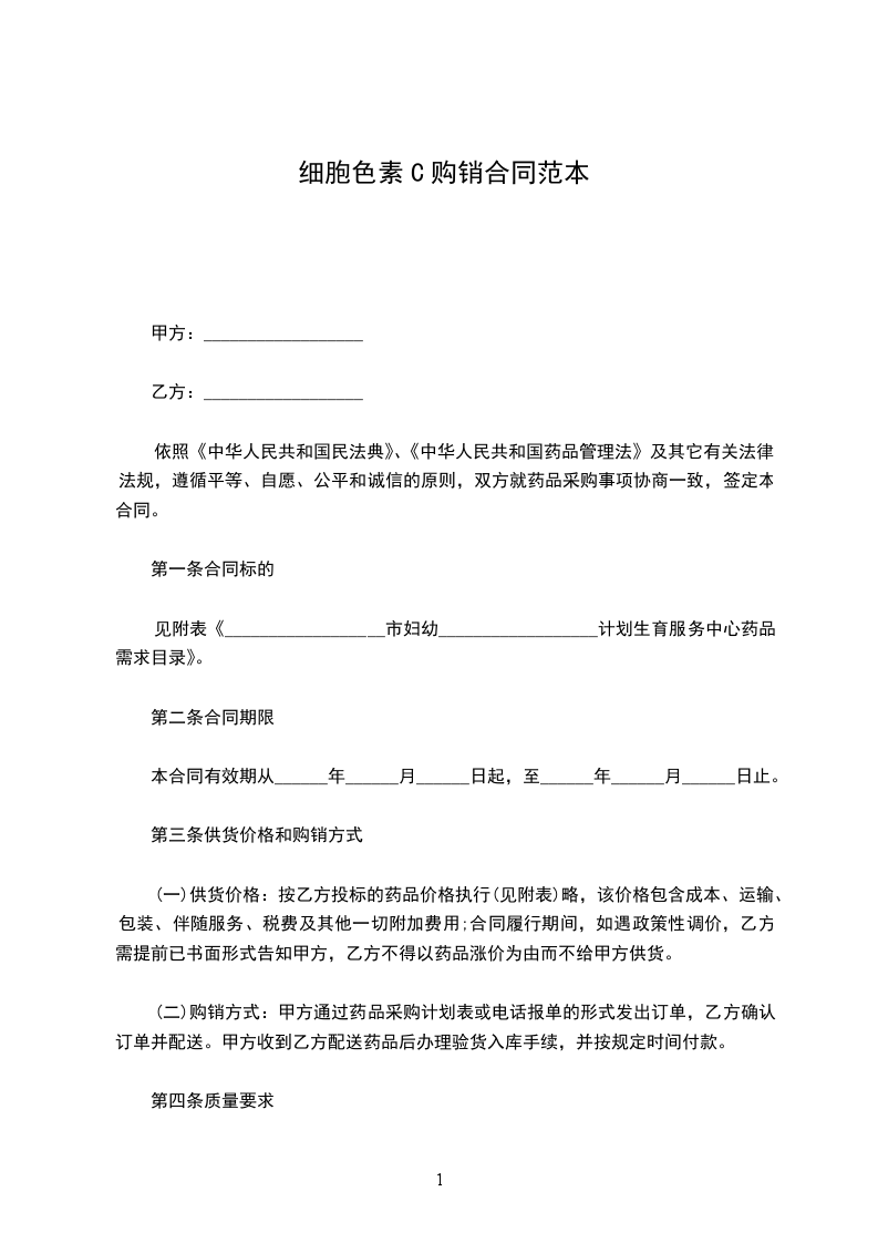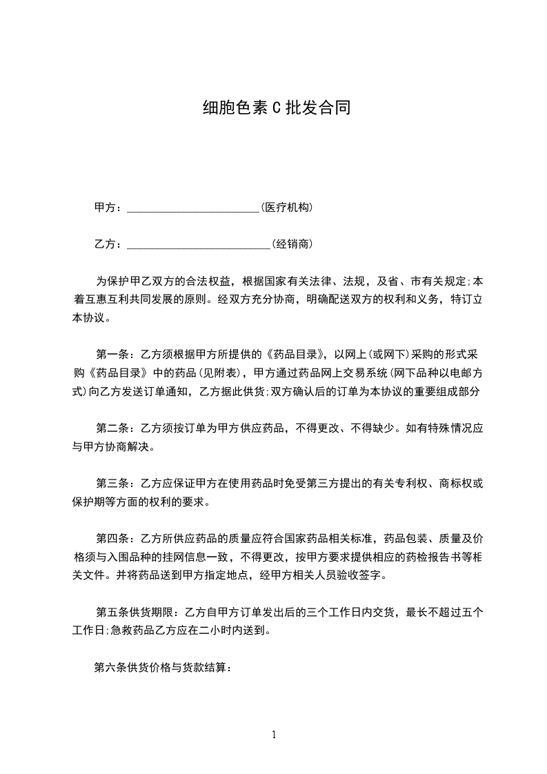 第二条:乙方须按订单为甲方供应药品,不得更改、不得缺少。如有特殊情况应与甲方协商解决。