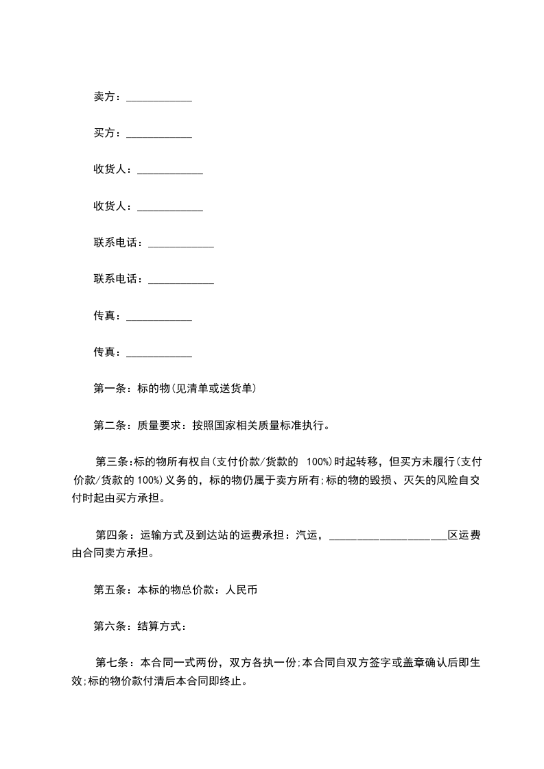 第一条:标的物(见清单或送货单)