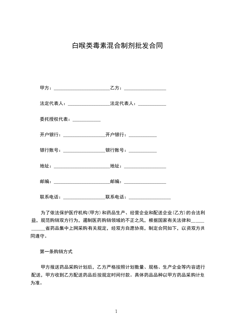 为了依法保护医疗机构(甲方)和药品生产、经营企业和配送企业(乙方)的合法利益,规范购销双方行为,遏制医药购销领域的不正之风,根据国家有关法律和____________省药品集中上网采购有关规定,经双方自愿协商,制定合同如下,以资双方共同遵守。