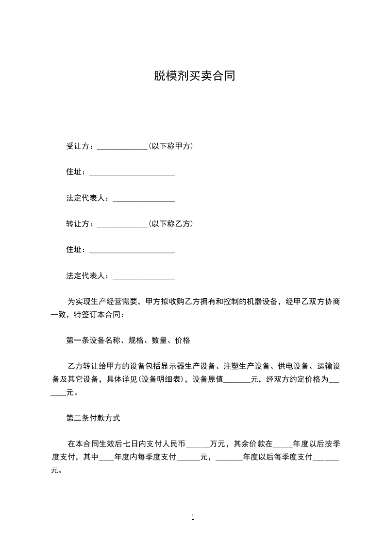 为实现生产经营需要,甲方拟收购乙方拥有和控制的机器设备,经甲乙双方协商一致,特签订本合同: