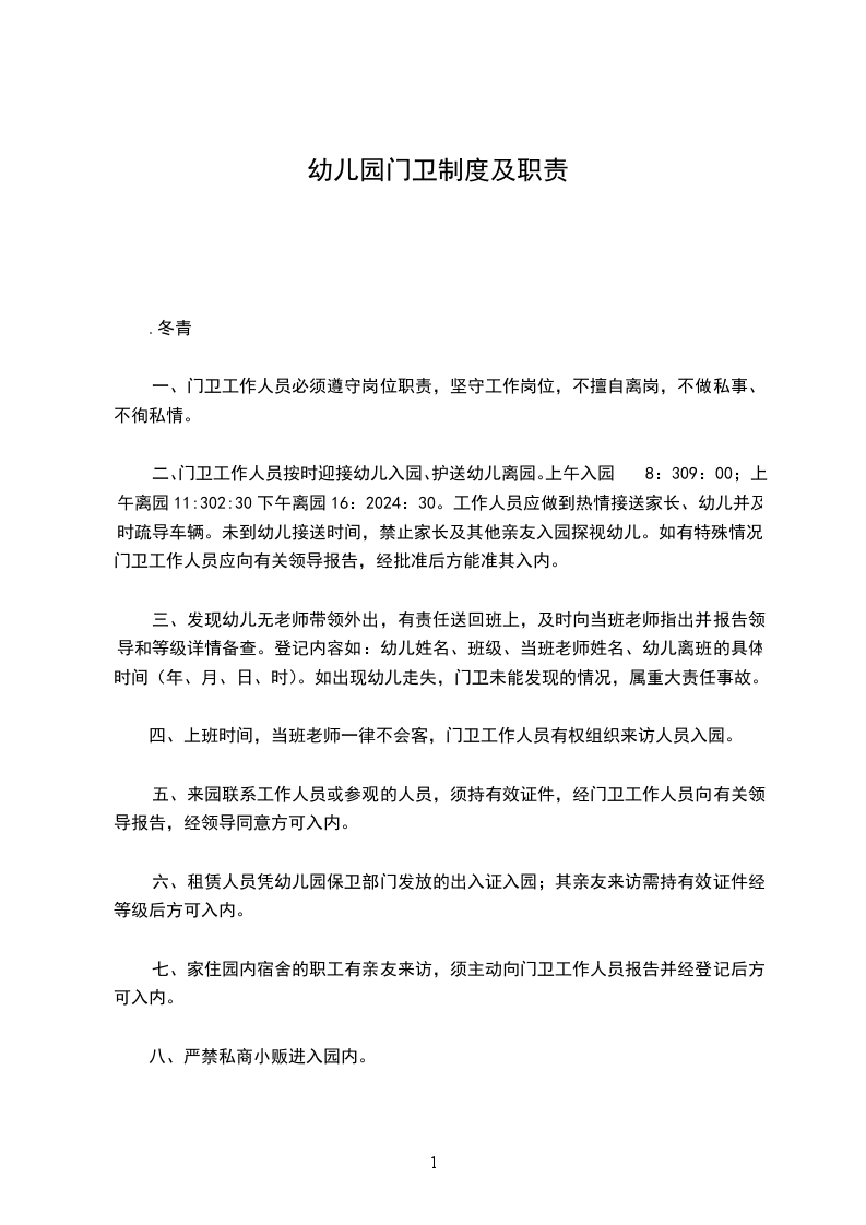 1、按幼儿园作息时间和要求,按时开关大门,任何时候不得处