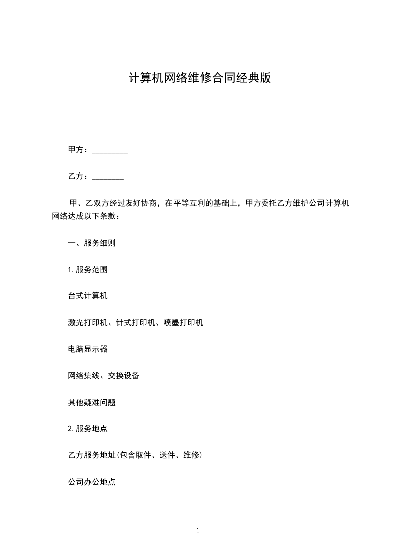 甲、乙双方经过友好协商,在平等互利的基础上,甲方委托乙方维护公司计算机网络达成以下条款: