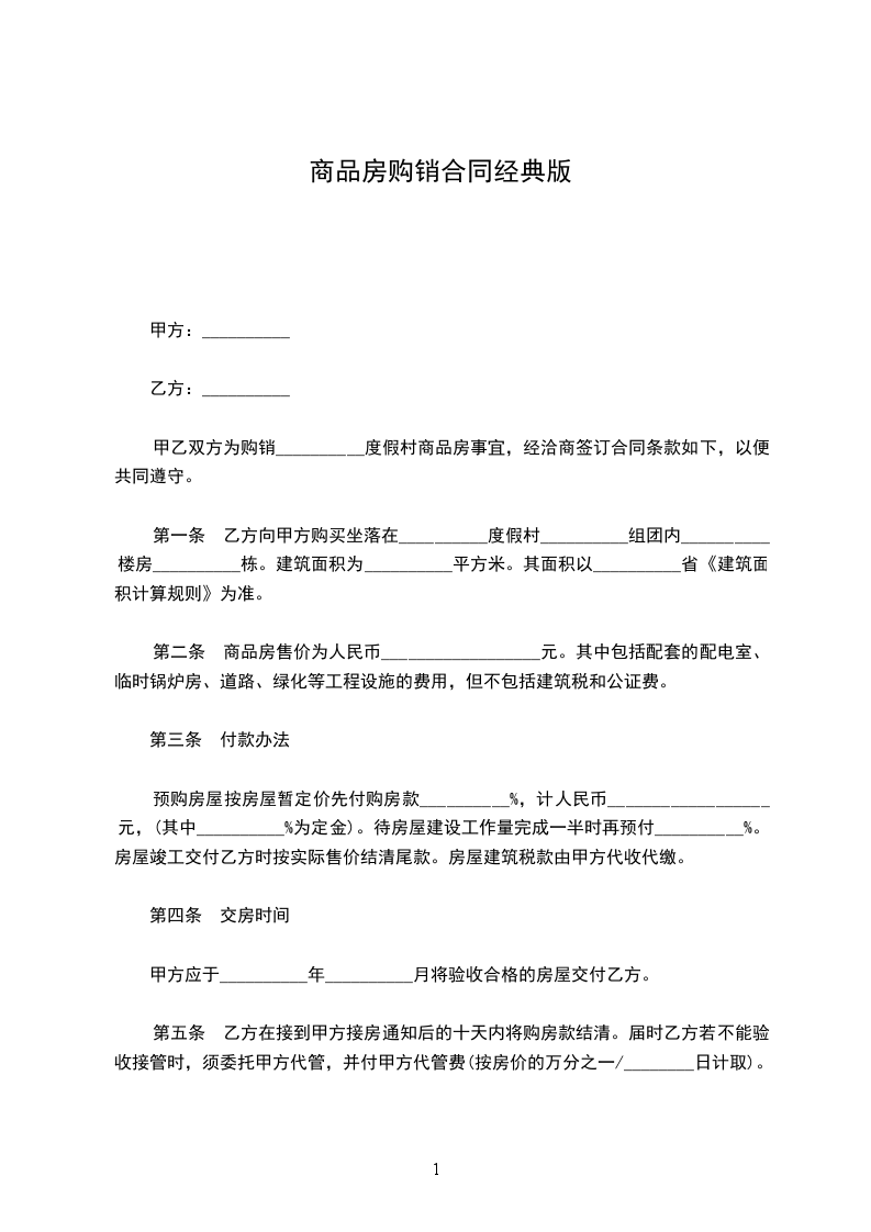 甲乙双方为购销__________度假村商品房事宜,经洽商签订合同条款如下,以便共同遵守。