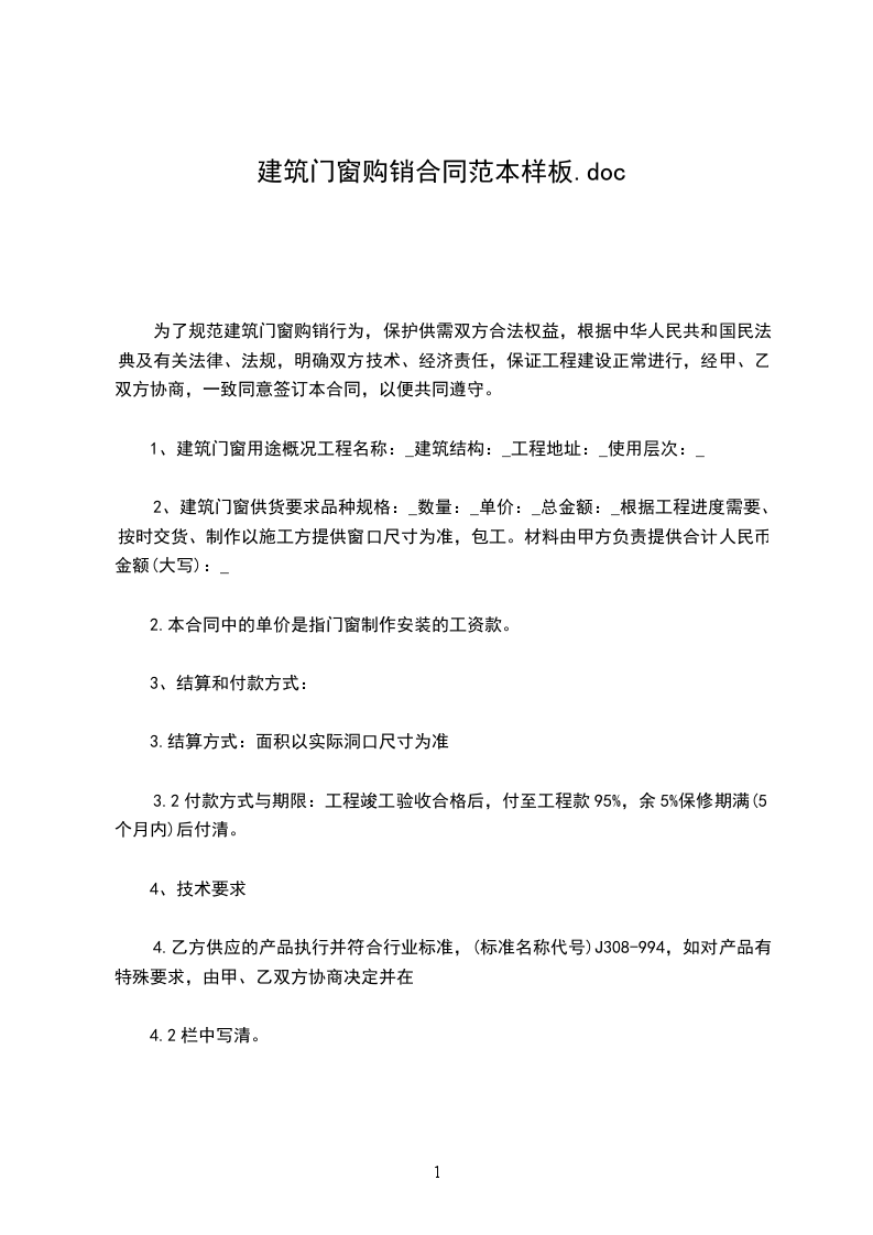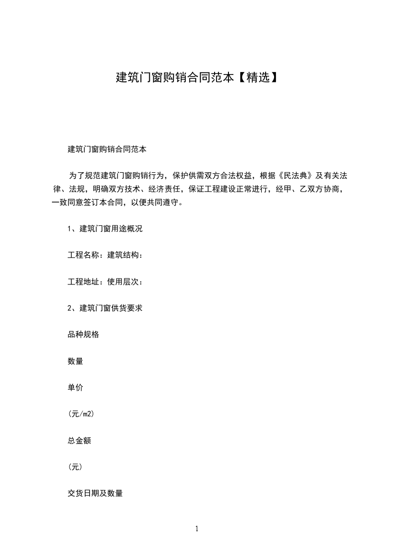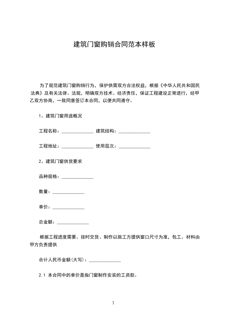为了规范建筑门窗购销行为,保护供需双方合法权益,根据《中华人民共和国民法典》及有关法律、法规,明确双方技术、经济责任,保证工程建设正常进行,经甲、乙双方协商,一致同意签订本合同,以便共同遵守。