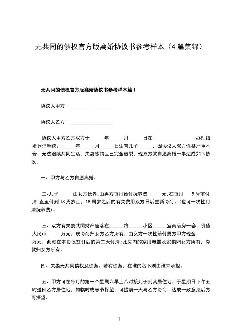 无共同债权官方版离婚协议书篇4