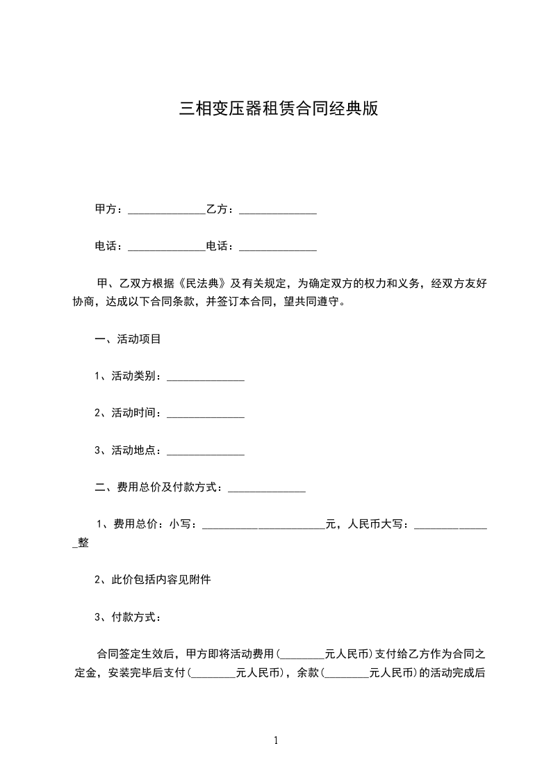 合同签定生效后,甲方即将活动费用(________元人民币)支付给乙方作为合同之定金,安装完毕后支付(________元人民币),余款(________元人民币)的活动完成后当天支付。甲方用现款方式提交乙方。如甲方未在规定时间内支付余款,乙方可按每天5%收取违约金。