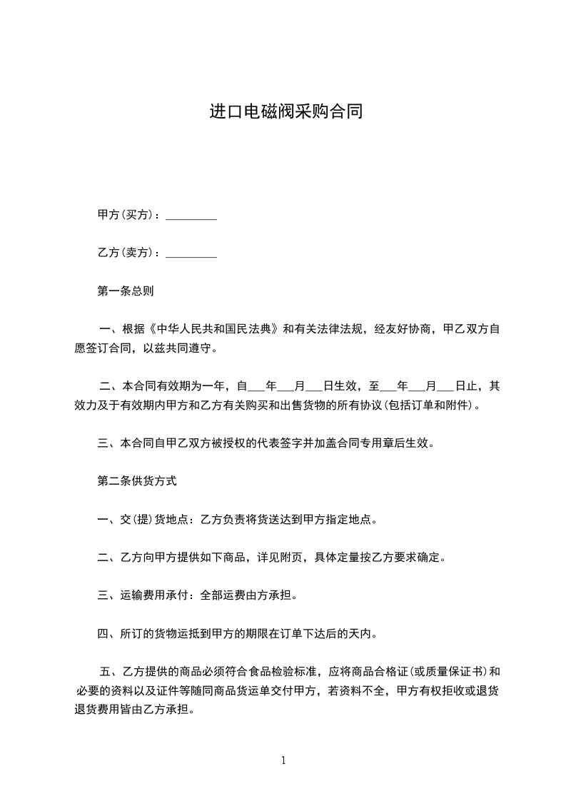 二、本合同有效期为一年,自___年___月___日生效,至___年___月___日止,其效力及于有效期内甲方和乙方有关购买和出售货物的所有协议(包括订单和附件)。