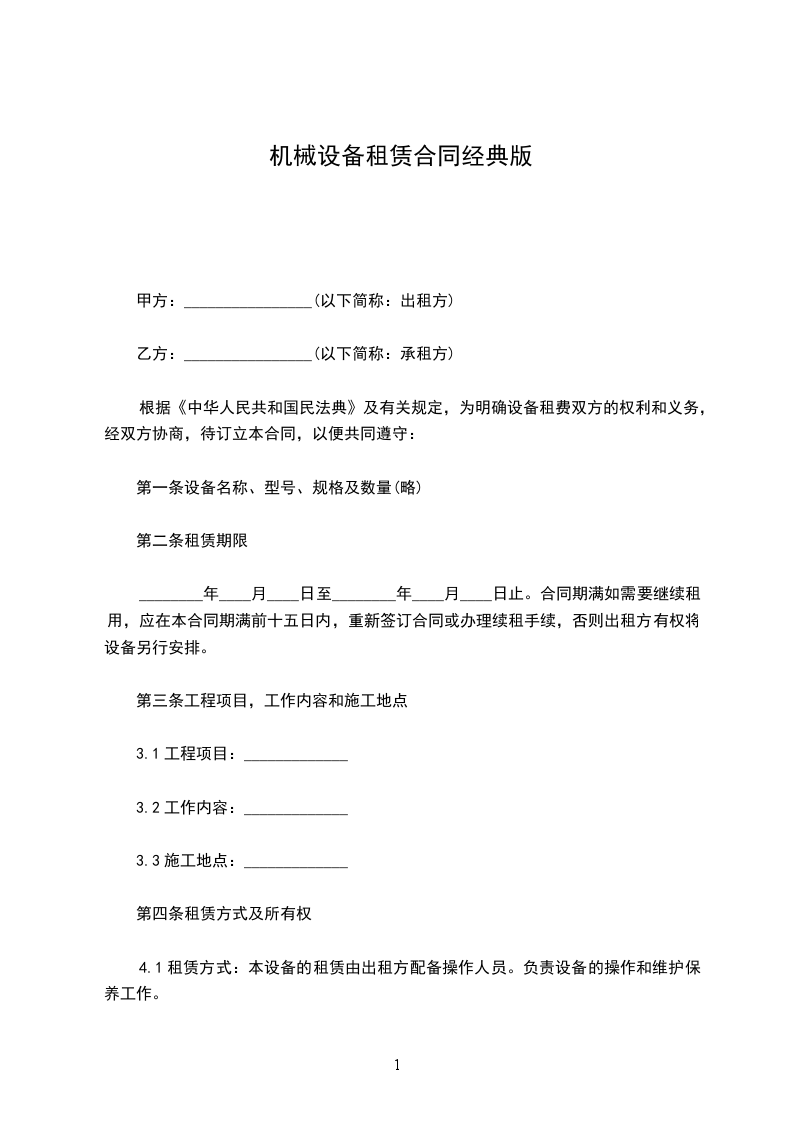 依据《民法典》及有关法律法规,为明确出租方与承租方的权利和义务,遵循平等、自愿、公平和诚信的原则,双方就机械租赁事宜协商一致,订立本合同。